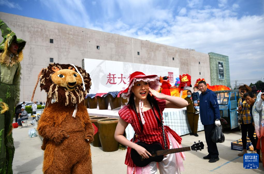 9月15日,上海乌龙剧团的演员们在红旗大集上表演。