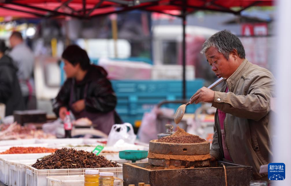 9月15日,一位摊主在红旗大集上售卖香料。