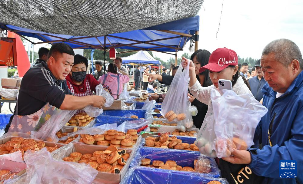 9月15日,市民和游客在红旗大集上购买月饼。