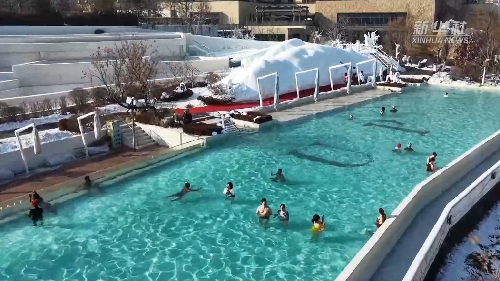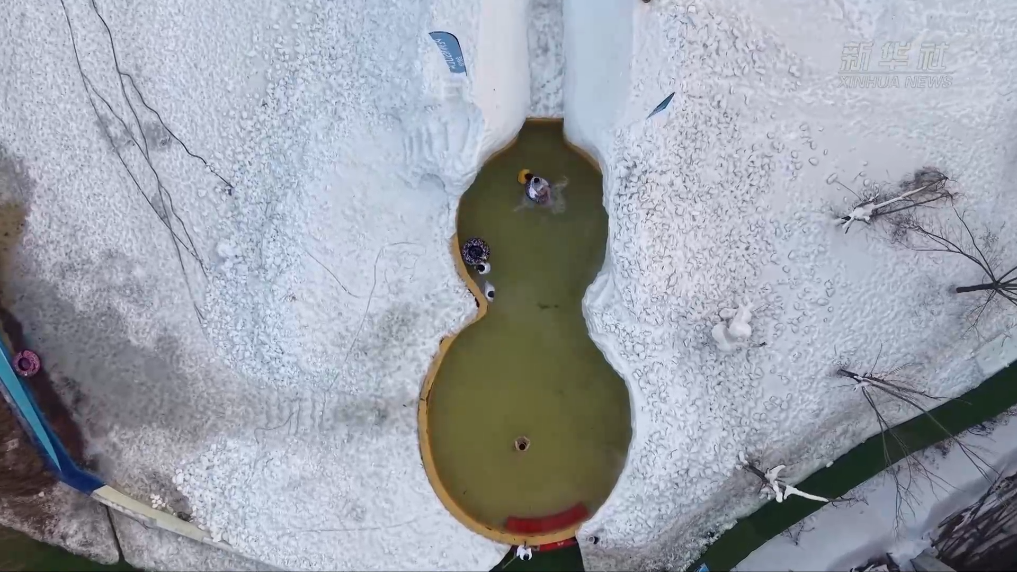 今年活动新增了521米直落蒲河的旋转冰滑梯,长168米的室外湖景无边泳池,游客可顺着雪滑梯直接滑到葫芦形状的温泉泡池里,寓意滑向“福禄”。