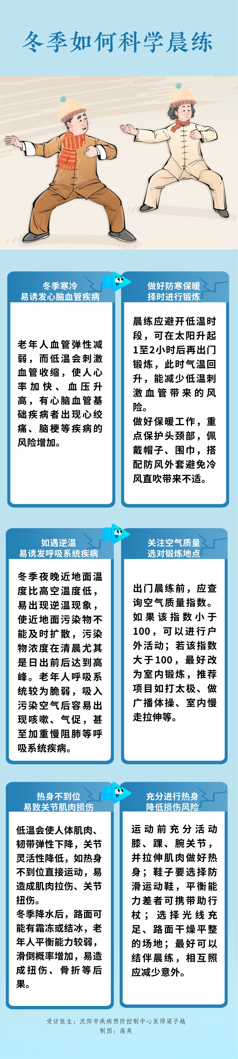 冬日清晨,依然有许多老年人坚持晨练以活络筋骨。但冬季清晨低温、空气环境复杂、路面湿滑,只有做好防护,才能让锻炼真正护佑健康。