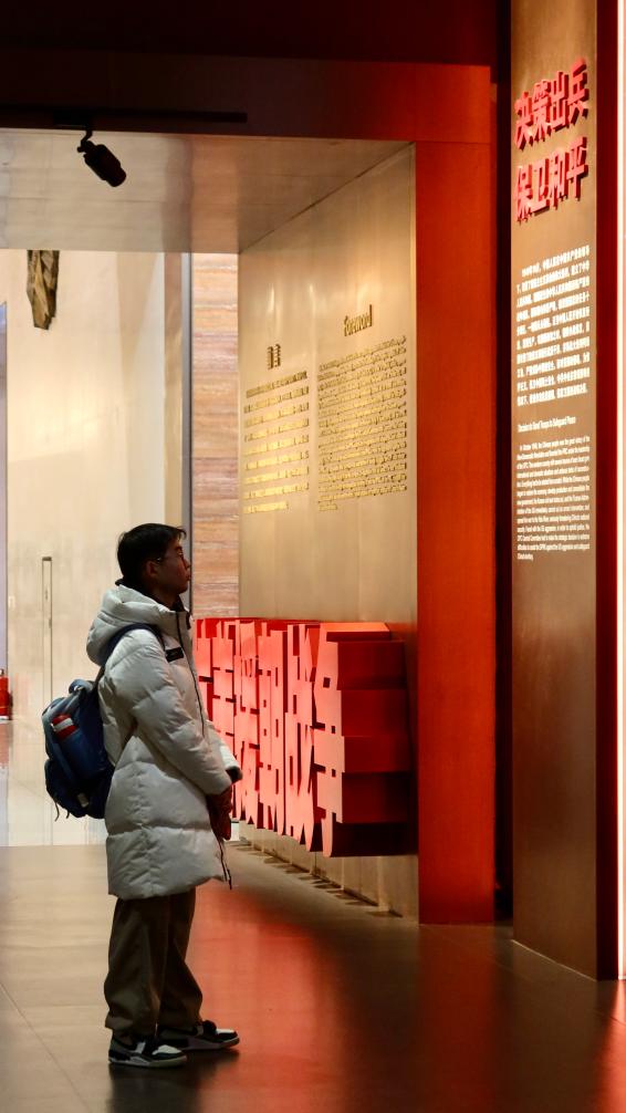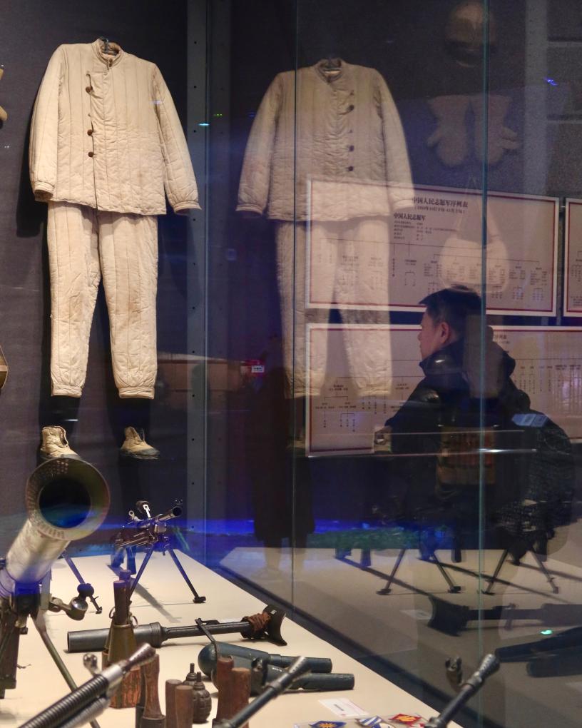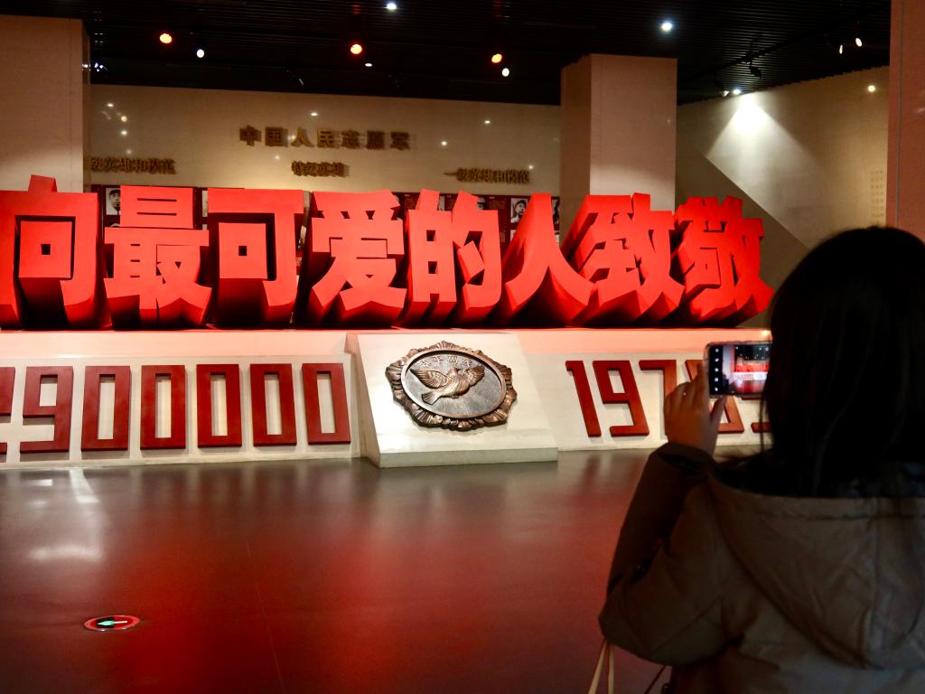 1月21日,游客在抗美援朝纪念馆内拍照。