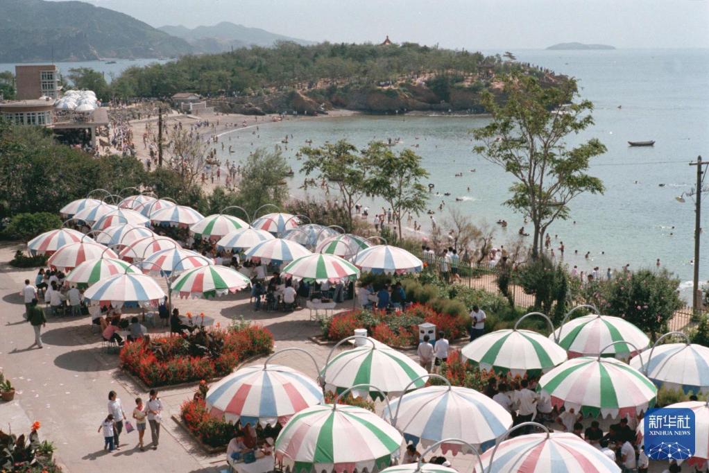 1983年10月,人们在星海公园观赏海天景色。新华社记者 于澄建 摄