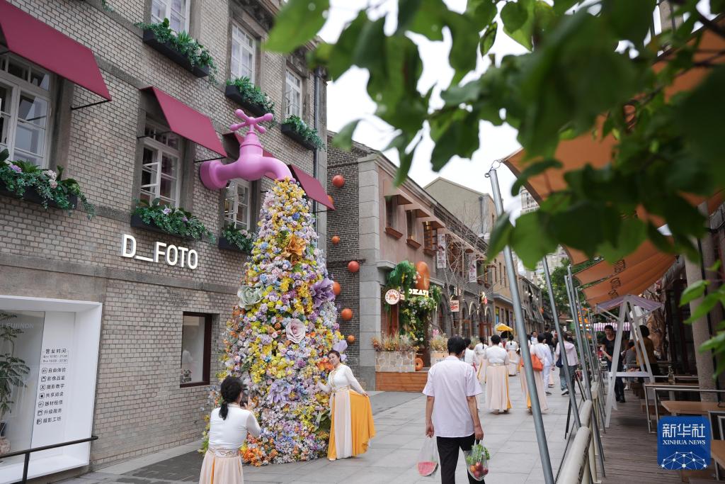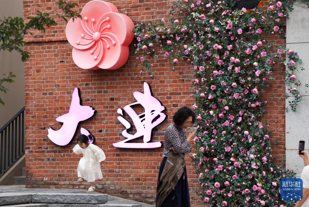 2025年6月13日,游客在辽宁省大连市东关街历史文化街区打卡拍照。新华社记者 李钢 摄