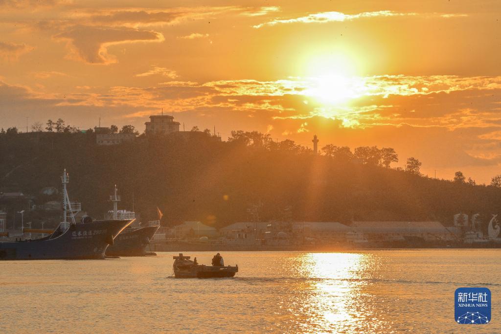 2019年8月31日,大连市长海县岛民驾船驶过海面。新华社记者 龙雷 摄
