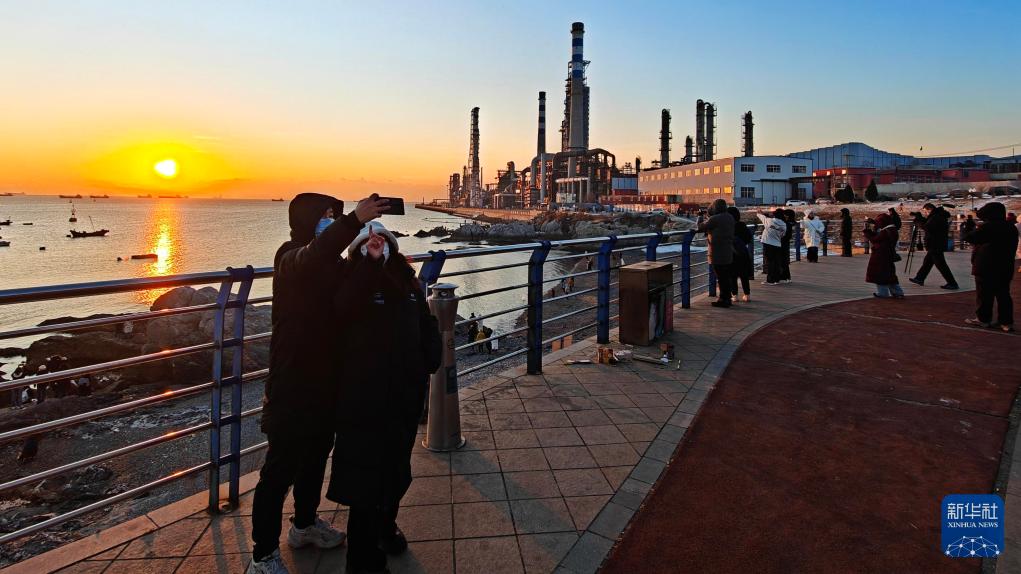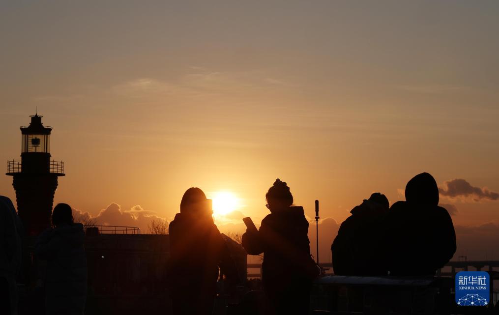 2026年1月1日清晨,辽宁省大连市市民在甘井子区蟹子湾公园拍摄2026年第一缕阳光。新华社发(刘德斌 摄)