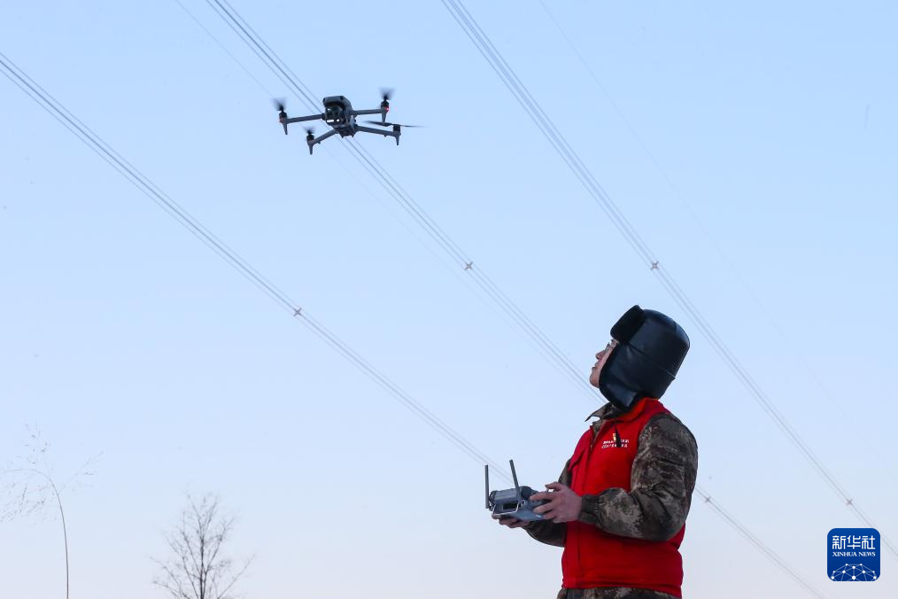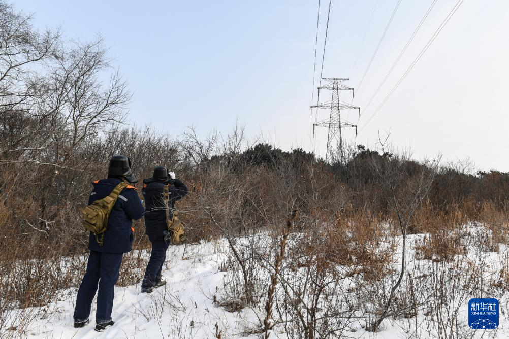 1月23日,国网本溪供电公司员工在500千伏白徐线进行巡检工作。