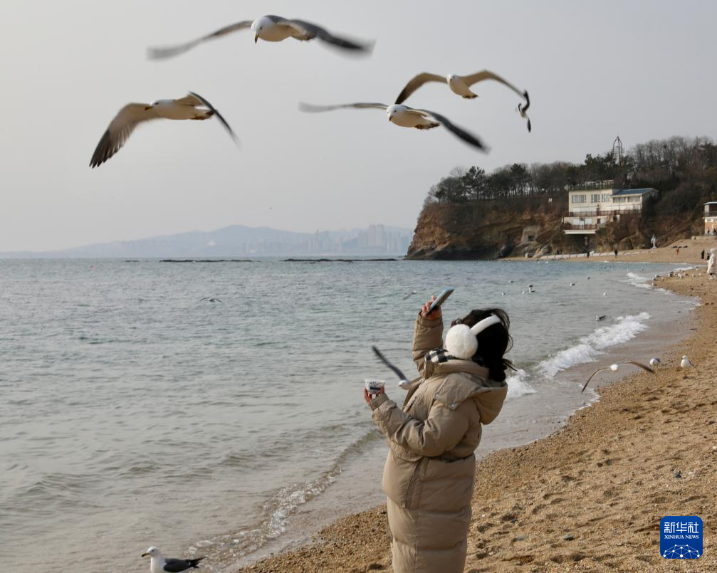冬日里,在辽宁省大连市海滨,成群的海鸥聚集栖息,吸引游人前来观赏。