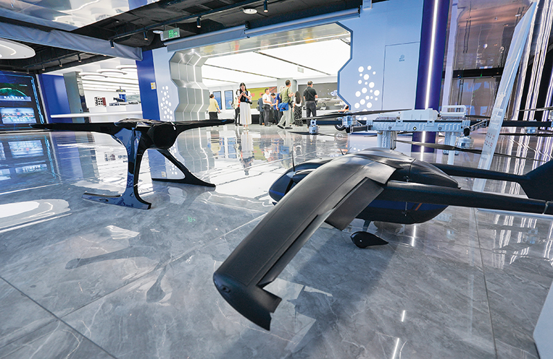 在位于无锡的长三角空间信息数字产业特色示范园,观众在观摩企业设计生产的无人机模型(2024年9月9日摄)杨磊摄 / 本刊